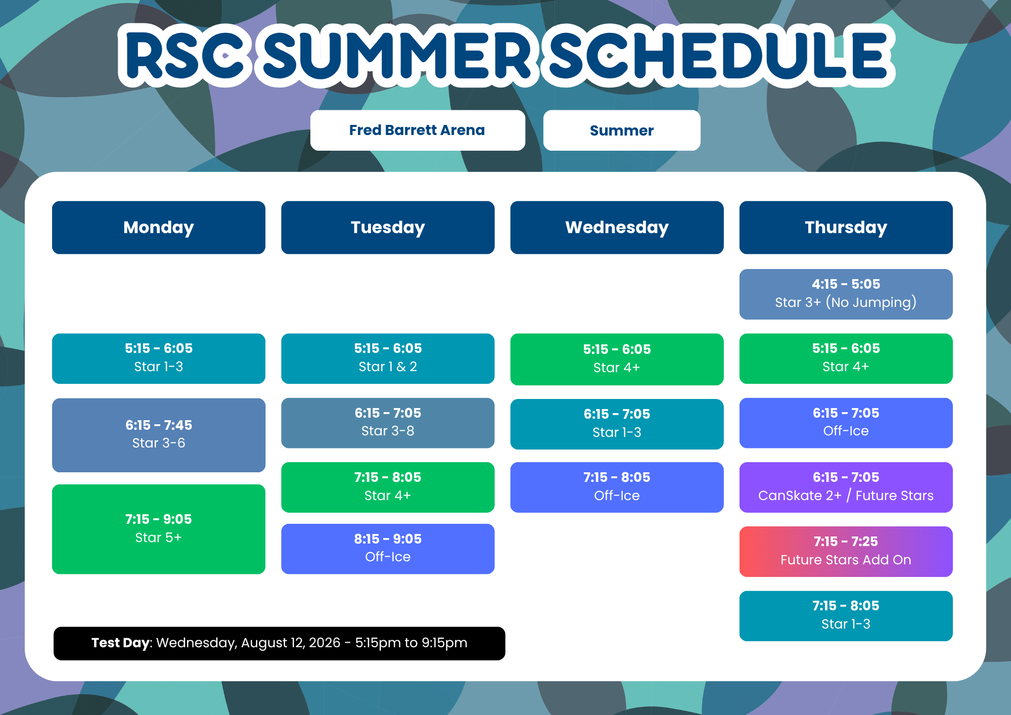 | Tuesday: July 7, 2026 to August 18, 2026 — Fred Barret Arena (West) | Cancellations | |